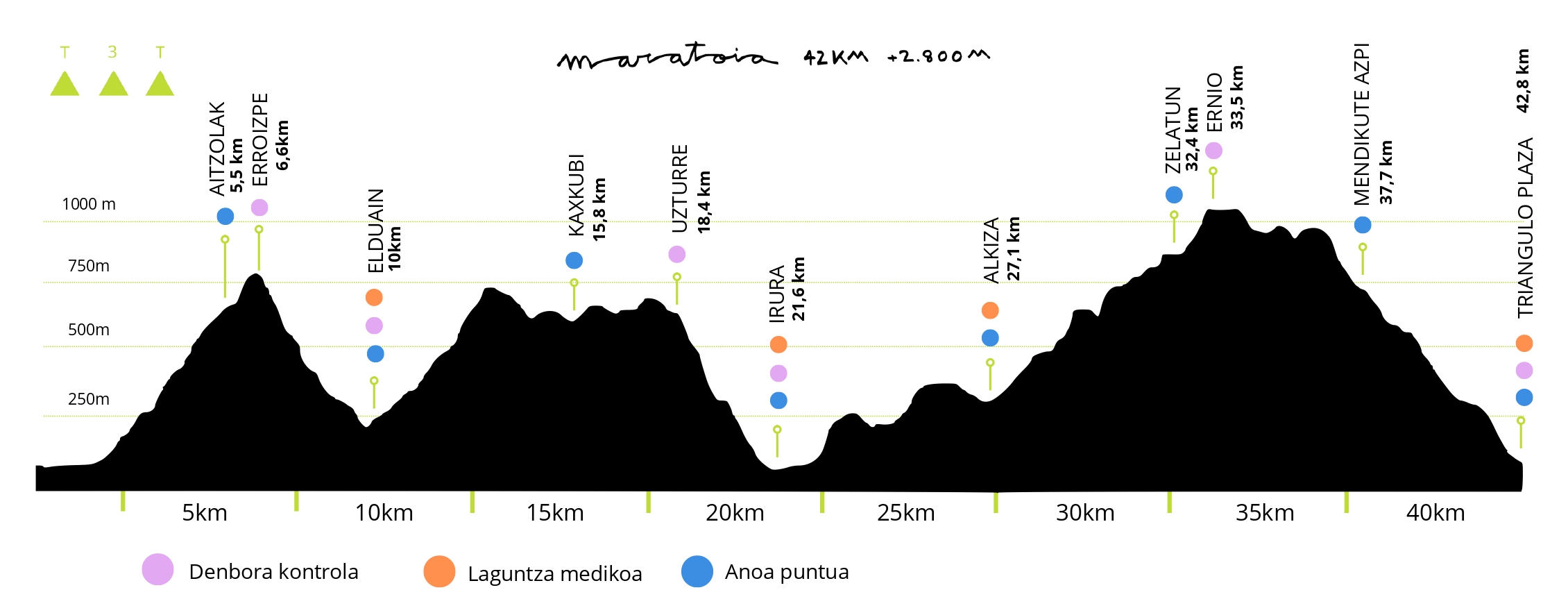 | Elduaien (denbora kontrola) | 33,6km | 7h00´ | Bai |
